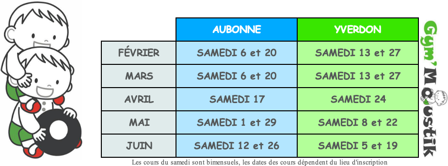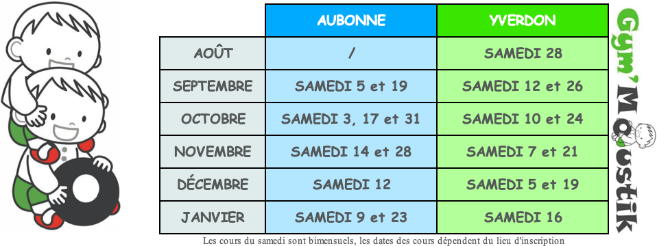 Les cours ont, sauf indication contraire, lieu au chemin des Rochettes à Aubonne ou à la plage d’Yverdon selon le jour d’inscription.