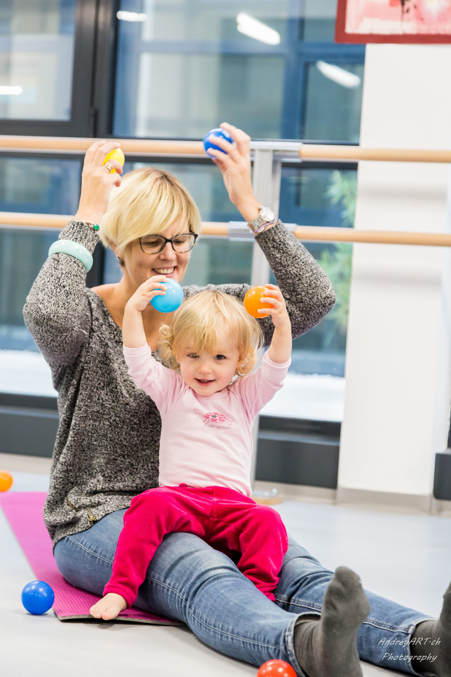Naturellement, les jeux communs et l’équilibre encore instable qui nécessite une présence rassurante et porteuse vont renforcer le lien parent-enfant tout en permettant à l’enfant de vivre l’autonomie et la prise de décision (balle verte ou bleue, assis sur les fesses ou sur les genoux?, et que se passe-t-il si je décide que la décision n’était finalement pas la bonne…?). La confiance en soi et en son parent se joue au cœur de l’activité.